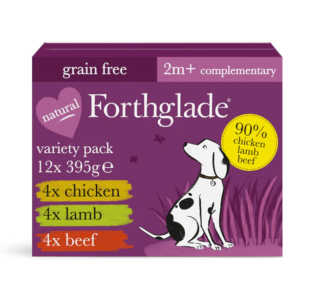 Forthglade just chicken, lamb & beef natural wet dog food – variety pack x 12 (395g)