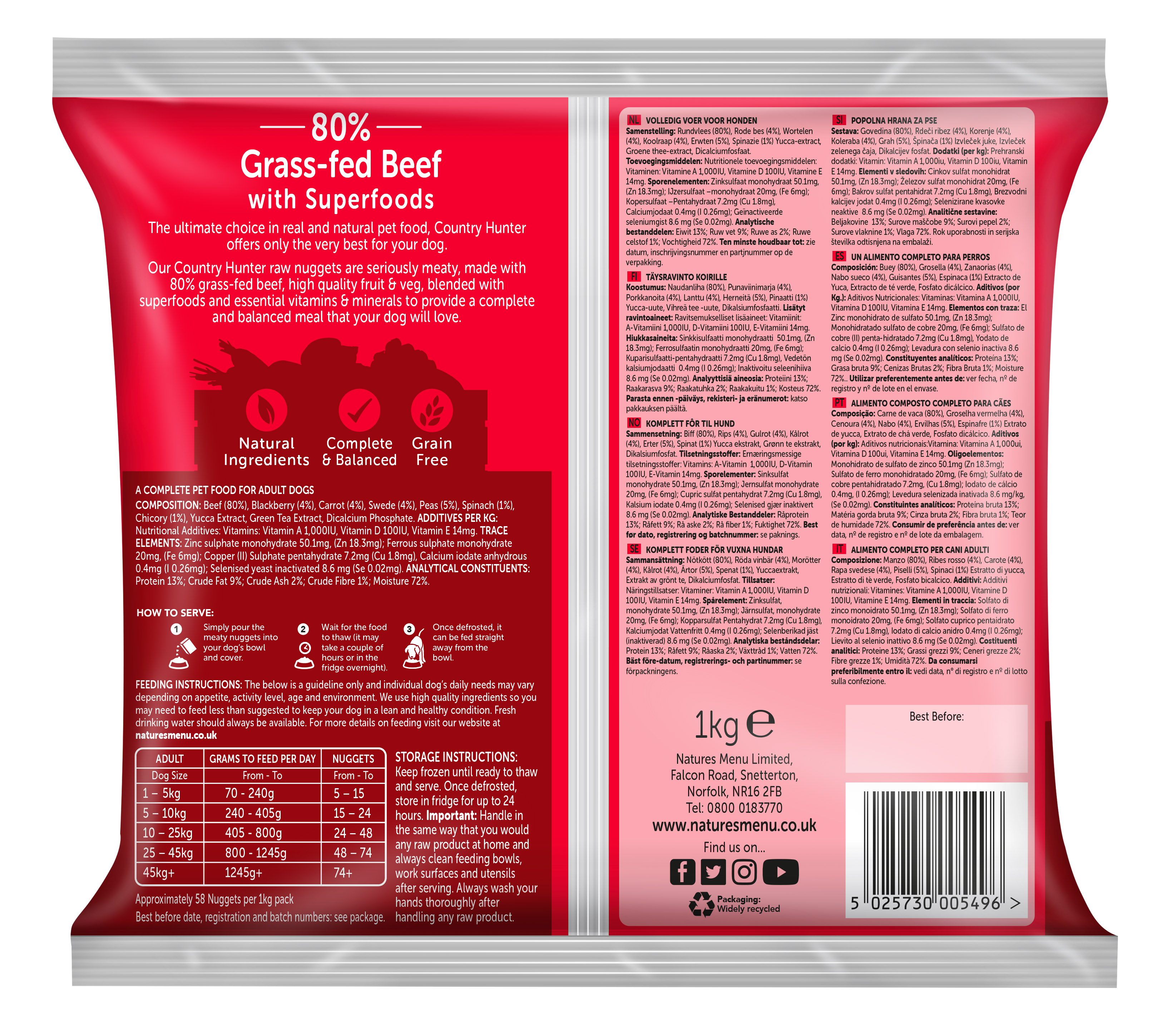 Country Hunter Raw Nuggets Grass Fed Beef 1kg