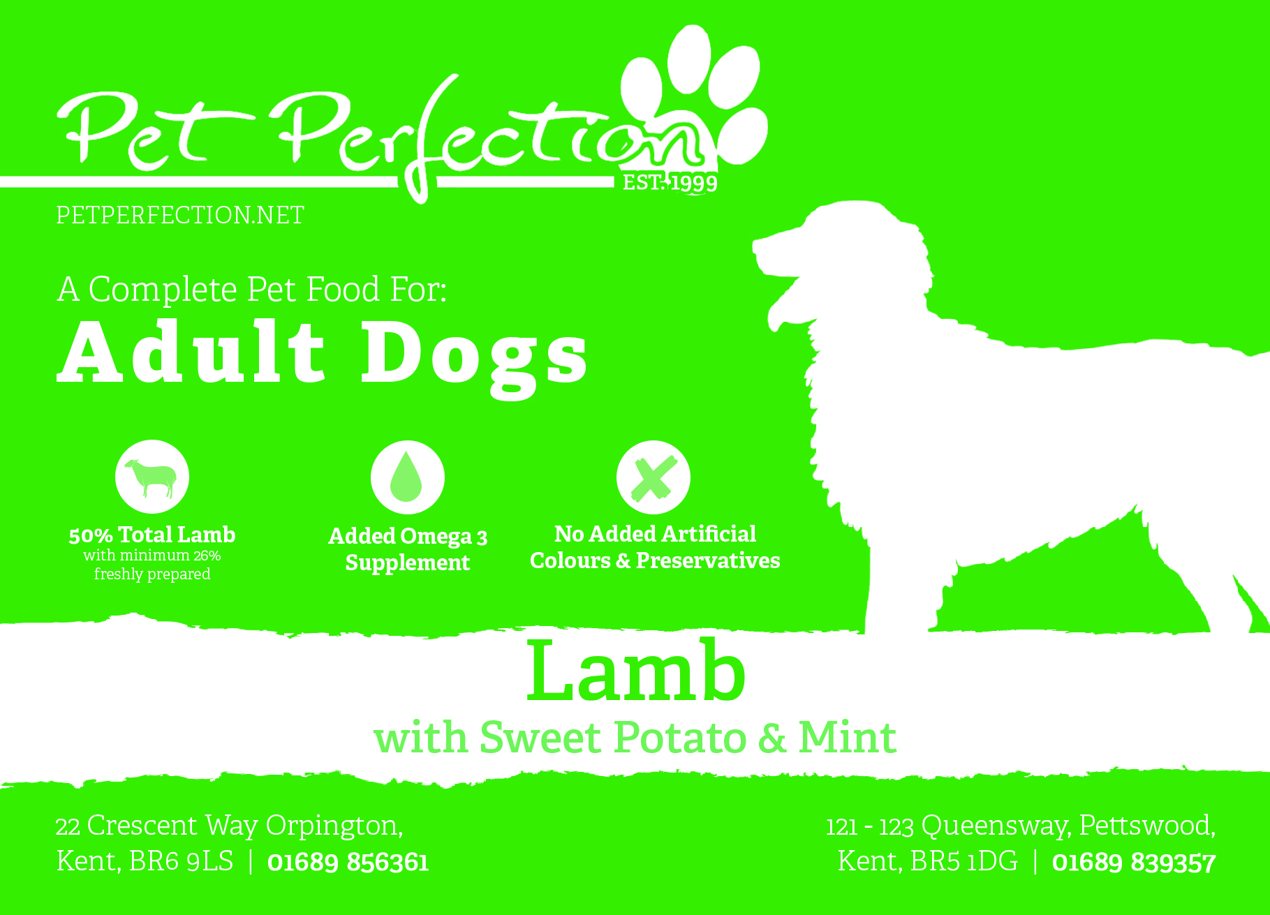 Lamb 50% (including Freshly Prepared Lamb 30%, Dried Lamb 18% &
