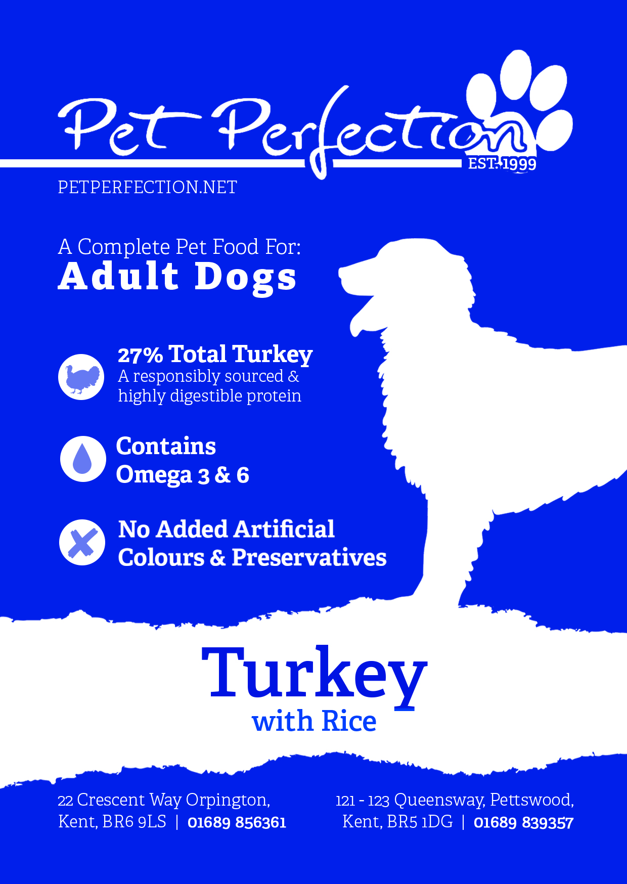 Rice (26%), Turkey Meal (26%), Barley, Oats, Poultry Fat,